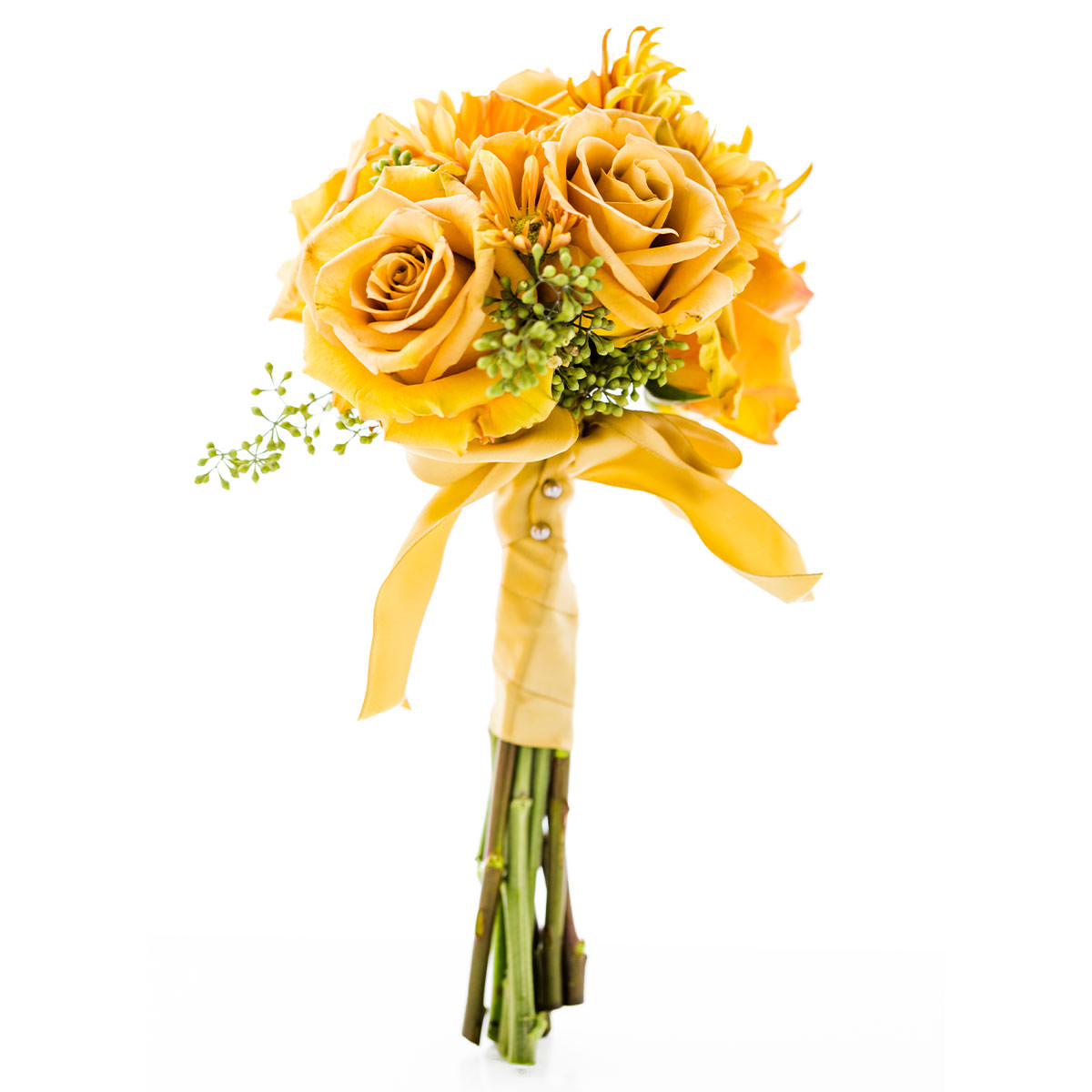 Роза одноголовая желтая, хризантема кустовая желтая, озотамнус. Упаковка (лента, пленка, крафт, сетка, пленка матовая)