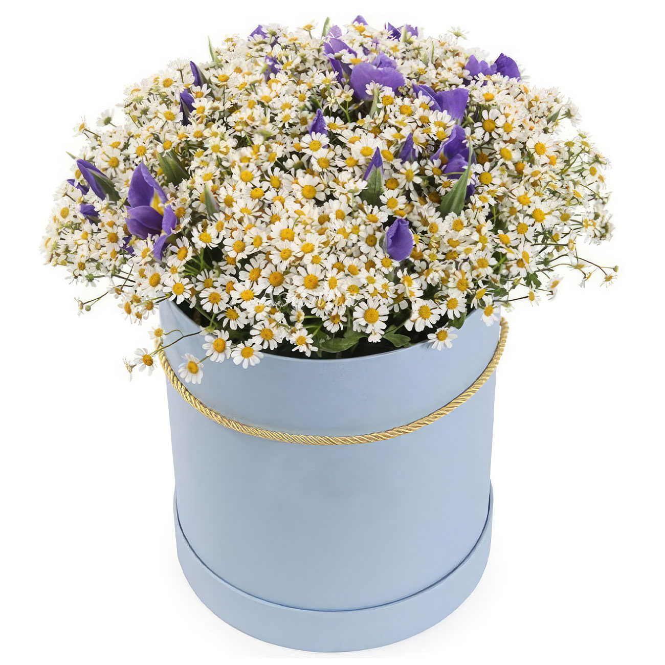 Ромашка, ирис. Упаковка (шляпная коробка, квадратный бокс, коробка сердце, оазис)